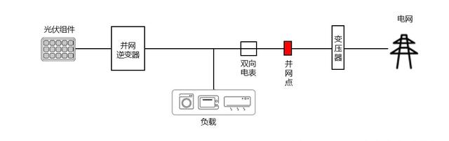 由光伏组件、并网逆变器、负载、双向电表、并网柜和电网组成。